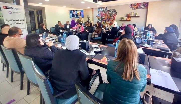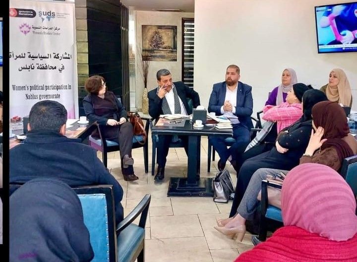 ضمن مشروع "المشاركة السياسية للمرأة " والمموول من بلدية برشلونة ومؤسسة SUDS, عقد مركز الدراسات النسوية وبالتعاون مع مديرية الحكم المحلي في محافظة نابلس وبحضور مدير عام المديرية أ.رائد مقبل ومنسقة النوع الاجتماعي في المديرية أ.انتصار سلامة ومديرة مركز الدراسات النسوية في نابلس أ.مينة اصلان ومنسقة المشروع أ.رحاب حالوب والمدرب أ. سامر جبريل وعدد من رؤساء وعضوات الهيئات المحلية, جلسة حوارية هدفت إلى استعراض برتوكول " إدماج النوع الاجتماعي في أعمال الهيئة المحلية " بالإضافة إلى الاطلاع على واقع مشاركة العضوات في الهيئات المحلية ومناقشة سبل تمكينهن من الوصول إلى مراكز صنع القرار وتعزيز مشاركتهن الحقيقية والفاعلة في عمل الهيئات المحلية.